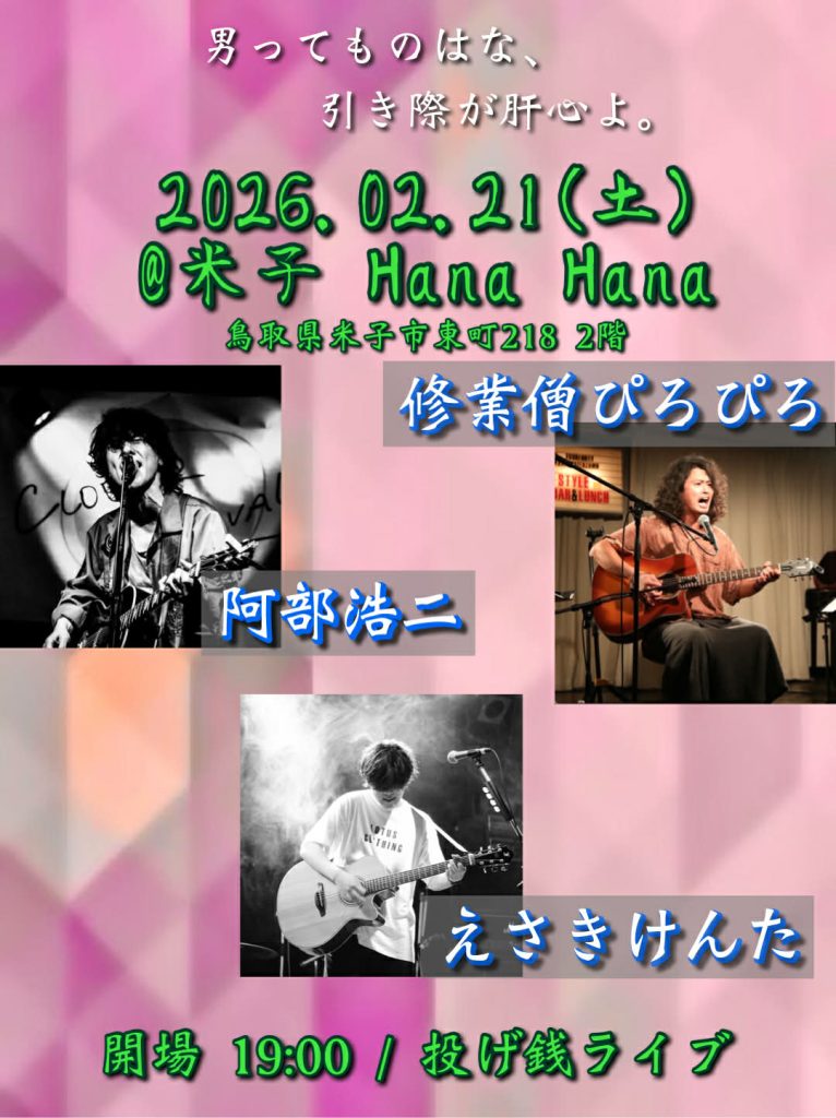 2026.2.21(土)修業僧ぴろぴろライブ 共演:阿部浩二、えさきけんた